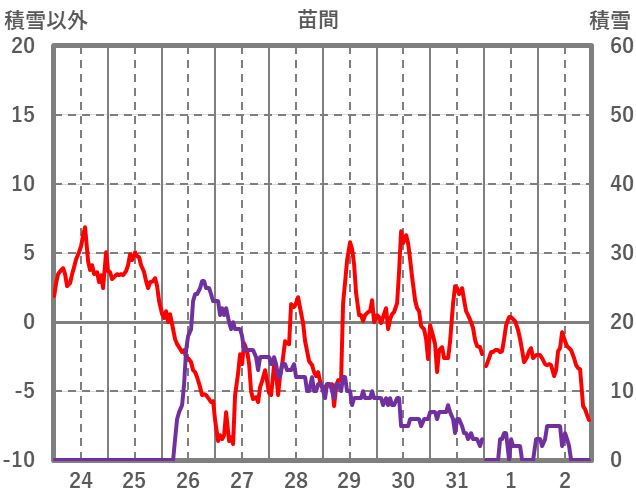 | 日 | 時 | 気温 | 降水 | 風向/風速 | 日照 | 積雪 | 降雪 |