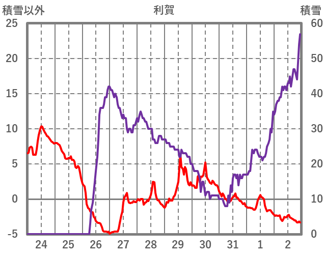 | 日 | 時 | 気温 | 降水 | 風向/風速 | 日照 | 積雪 | 降雪 |