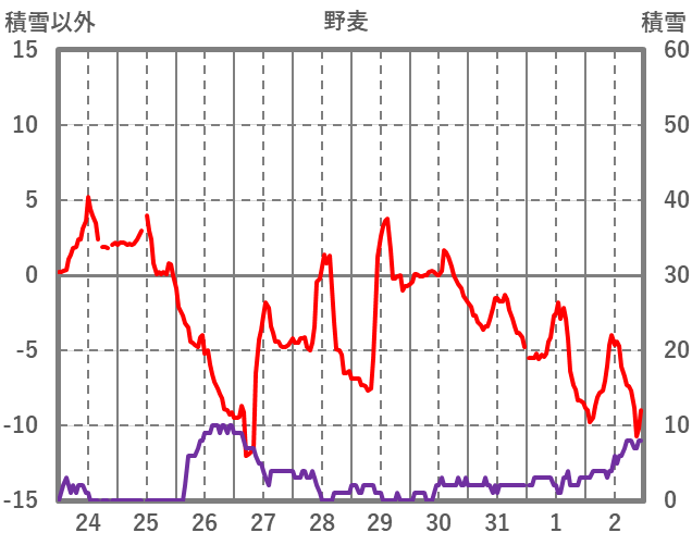 | 日 | 時 | 気温 | 降水 | 風向/風速 | 日照 | 積雪 | 降雪 |