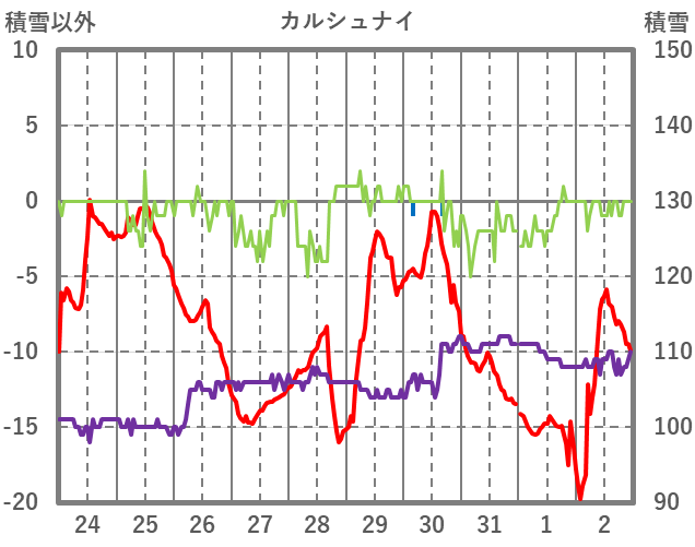 | 日 | 時 | 気温 | 降水 | 風向/風速 | 日照 | 積雪 | 降雪 |