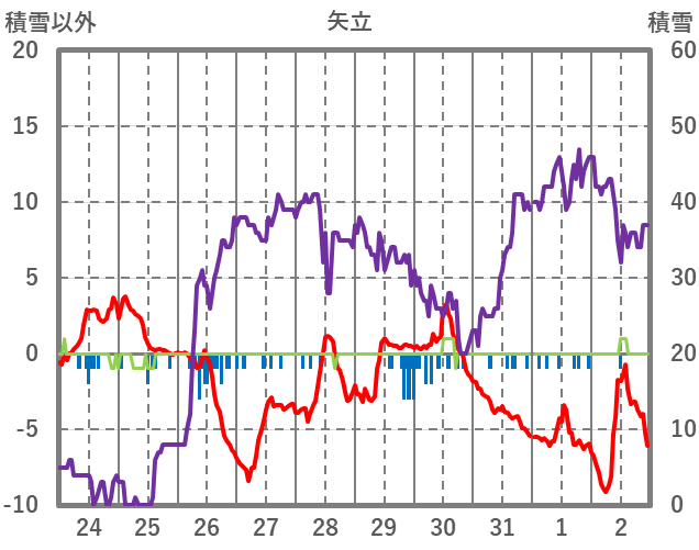 | 日 | 時 | 気温 | 降水 | 風向/風速 | 日照 | 積雪 | 降雪 |