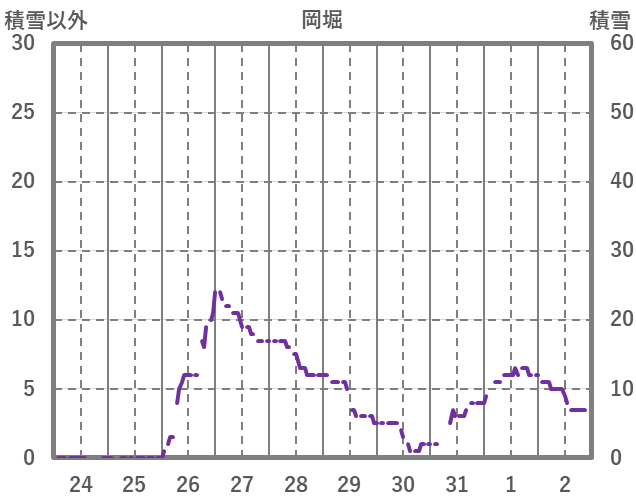 | 日 | 時 | 気温 | 降水 | 風向/風速 | 日照 | 積雪 | 降雪 |