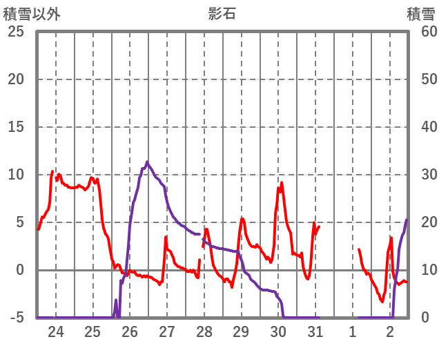 | 日 | 時 | 気温 | 降水 | 風向/風速 | 日照 | 積雪 | 降雪 |