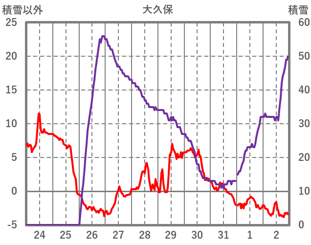 | 日 | 時 | 気温 | 降水 | 風向/風速 | 日照 | 積雪 | 降雪 |