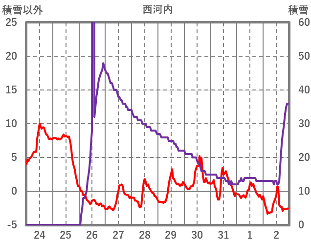 | 日 | 時 | 気温 | 降水 | 風向/風速 | 日照 | 積雪 | 降雪 |