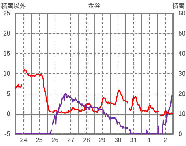 | 日 | 時 | 気温 | 降水 | 風向/風速 | 日照 | 積雪 | 降雪 |