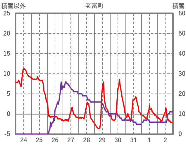 | 日 | 時 | 気温 | 降水 | 風向/風速 | 日照 | 積雪 | 降雪 |
