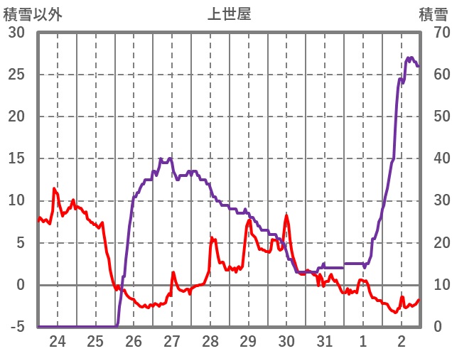 | 日 | 時 | 気温 | 降水 | 風向/風速 | 日照 | 積雪 | 降雪 |