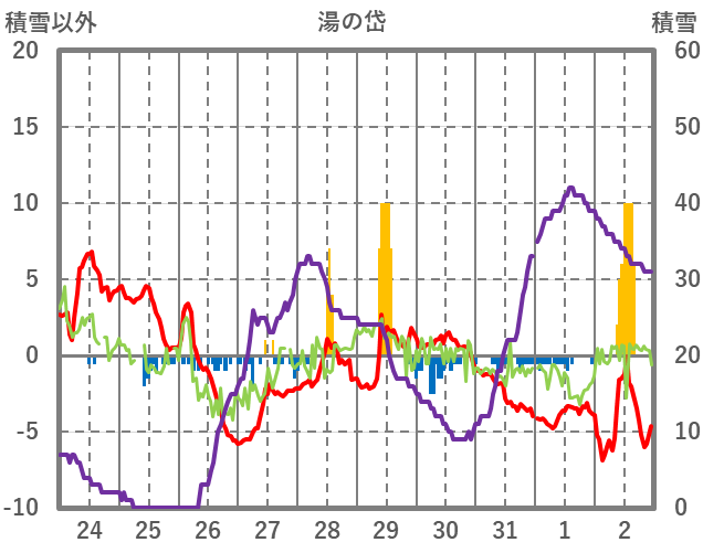 | 日 | 時 | 気温 | 降水 | 風向/風速 | 日照 | 積雪 | 降雪 |
