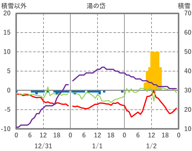| 日 | 時 | 気温 | 降水 | 風向/風速 | 日照 | 積雪 | 降雪 |