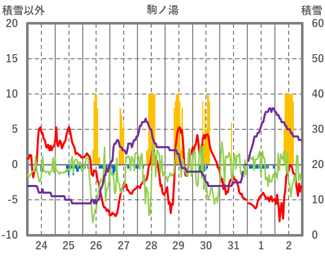 | 日 | 時 | 気温 | 降水 | 風向/風速 | 日照 | 積雪 | 降雪 |
