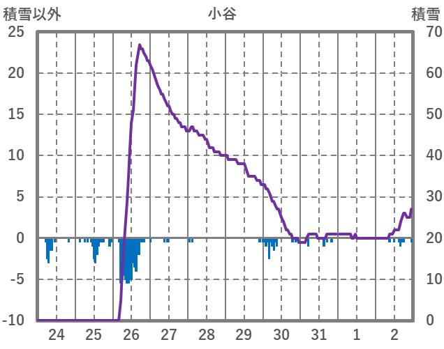 | 日 | 時 | 気温 | 降水 | 風向/風速 | 日照 | 積雪 | 降雪 |