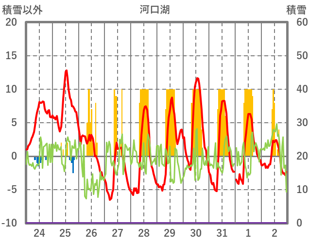 | 日 | 時 | 気温 | 降水 | 風向/風速 | 日照 | 積雪 | 降雪 |