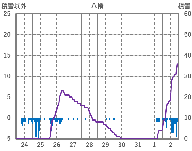 | 日 | 時 | 気温 | 降水 | 風向/風速 | 日照 | 積雪 | 降雪 |