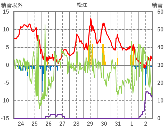 | 日 | 時 | 気温 | 降水 | 風向/風速 | 日照 | 積雪 | 降雪 |