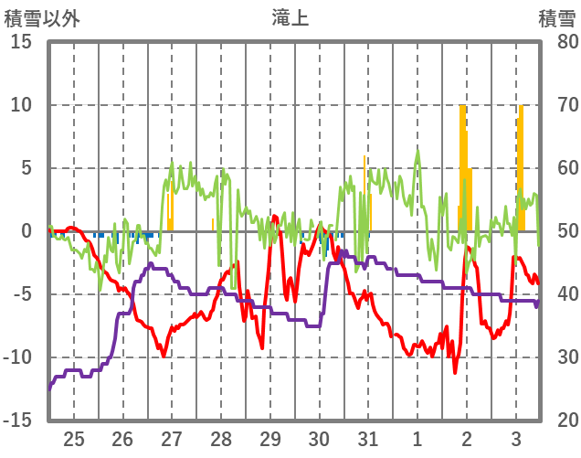 | 日 | 時 | 気温 | 降水 | 風向/風速 | 日照 | 積雪 | 降雪 |