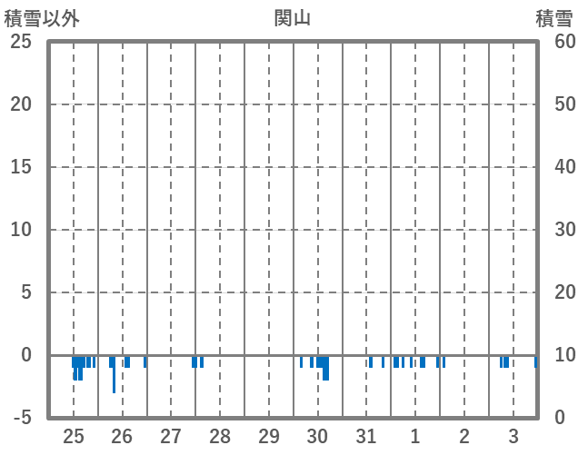 | 日 | 時 | 気温 | 降水 | 風向/風速 | 日照 | 積雪 | 降雪 |