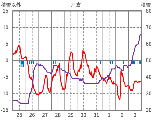 | 日 | 時 | 気温 | 降水 | 風向/風速 | 日照 | 積雪 | 降雪 |
