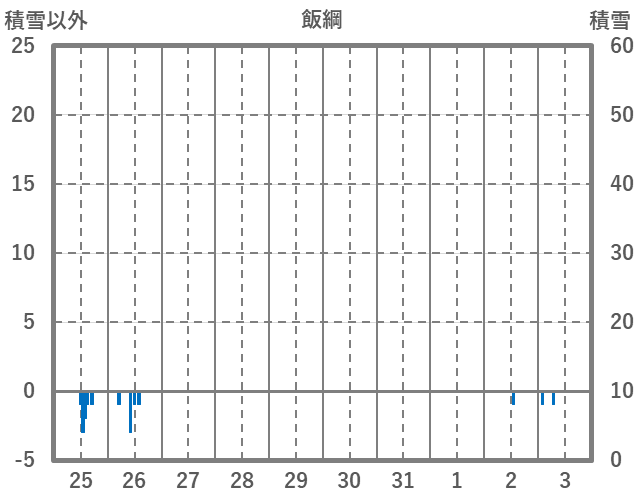 | 日 | 時 | 気温 | 降水 | 風向/風速 | 日照 | 積雪 | 降雪 |