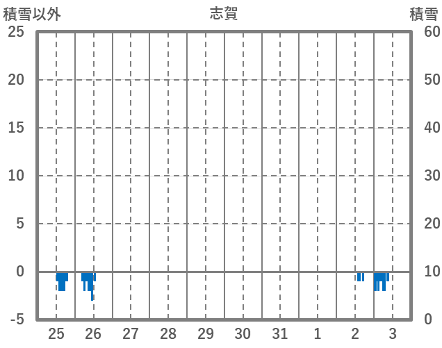 | 日 | 時 | 気温 | 降水 | 風向/風速 | 日照 | 積雪 | 降雪 |