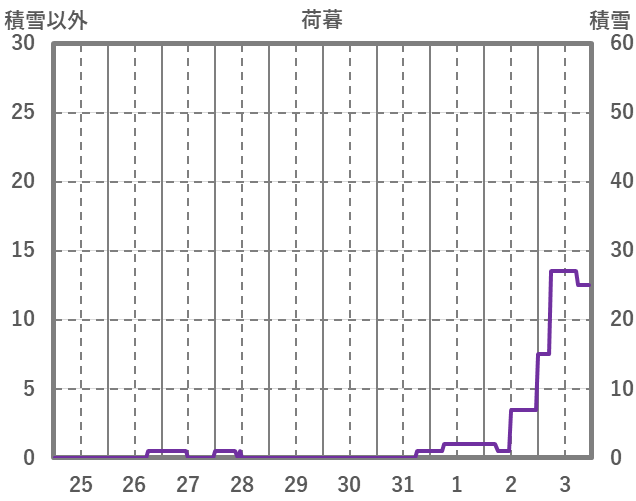 | 日 | 時 | 気温 | 降水 | 風向/風速 | 日照 | 積雪 | 降雪 |