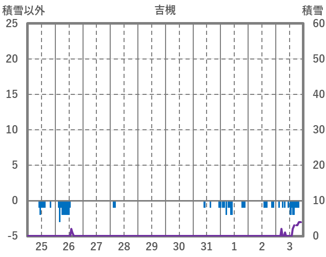 | 日 | 時 | 気温 | 降水 | 風向/風速 | 日照 | 積雪 | 降雪 |