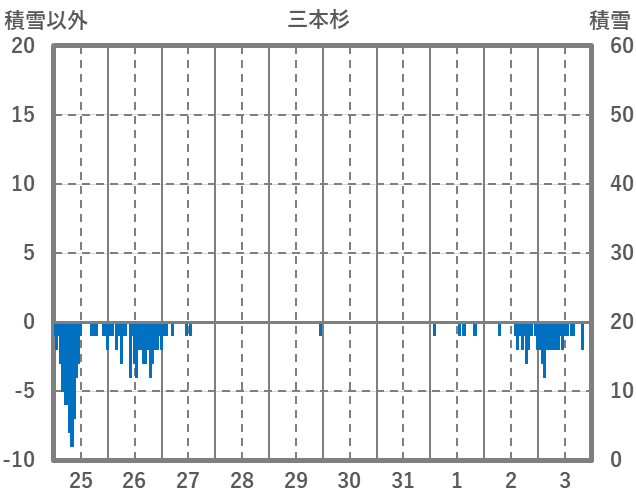 | 日 | 時 | 気温 | 降水 | 風向/風速 | 日照 | 積雪 | 降雪 |