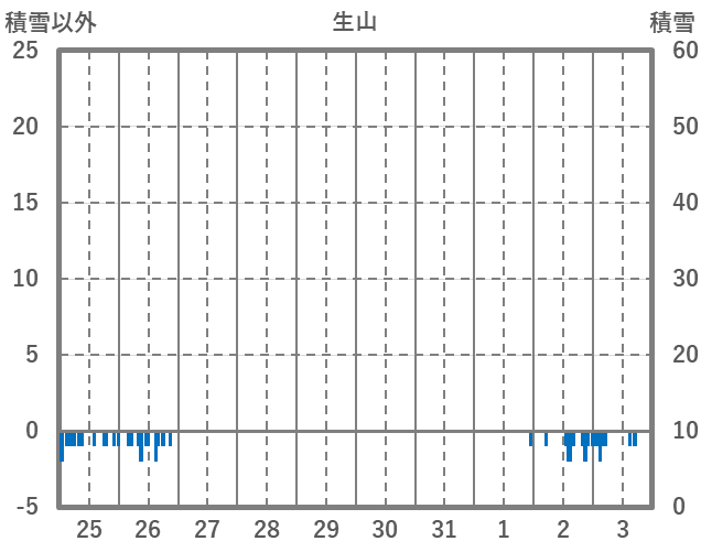 | 日 | 時 | 気温 | 降水 | 風向/風速 | 日照 | 積雪 | 降雪 |