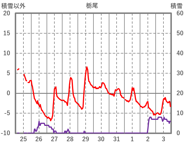 | 日 | 時 | 気温 | 降水 | 風向/風速 | 日照 | 積雪 | 降雪 |