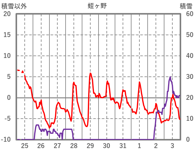 | 日 | 時 | 気温 | 降水 | 風向/風速 | 日照 | 積雪 | 降雪 |