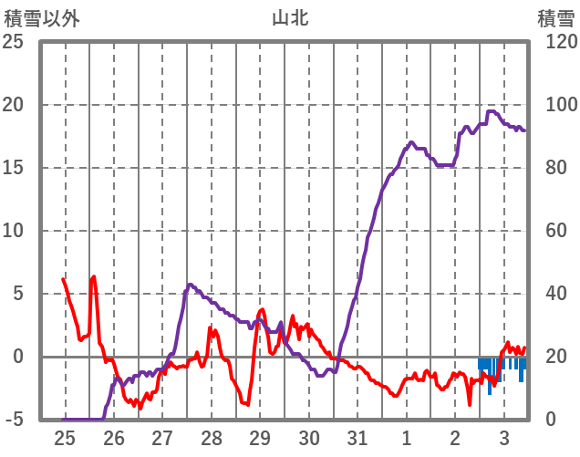| 日 | 時 | 気温 | 降水 | 風向/風速 | 日照 | 積雪 | 降雪 |