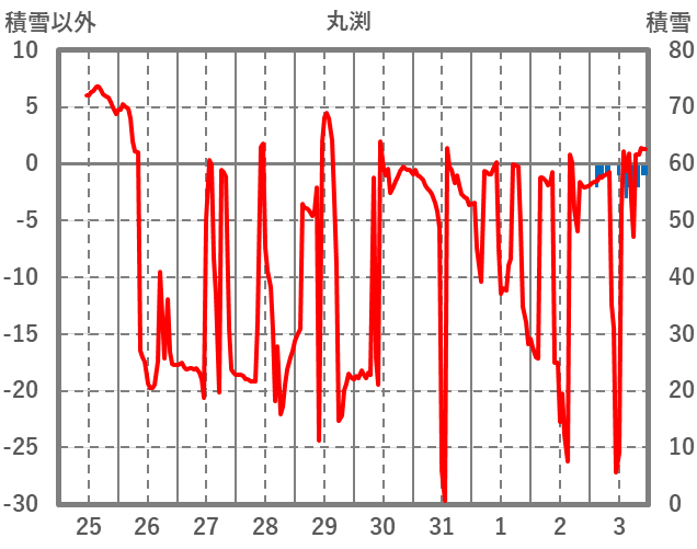 | 日 | 時 | 気温 | 降水 | 風向/風速 | 日照 | 積雪 | 降雪 |