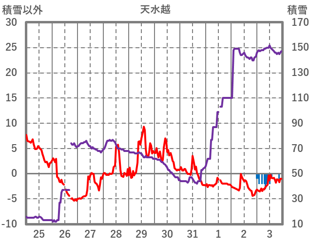 | 日 | 時 | 気温 | 降水 | 風向/風速 | 日照 | 積雪 | 降雪 |
