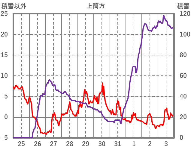 | 日 | 時 | 気温 | 降水 | 風向/風速 | 日照 | 積雪 | 降雪 |