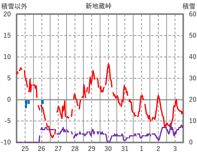 | 日 | 時 | 気温 | 降水 | 風向/風速 | 日照 | 積雪 | 降雪 |