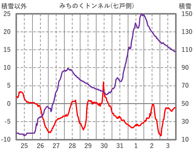 | 日 | 時 | 気温 | 降水 | 風向/風速 | 日照 | 積雪 | 降雪 |
