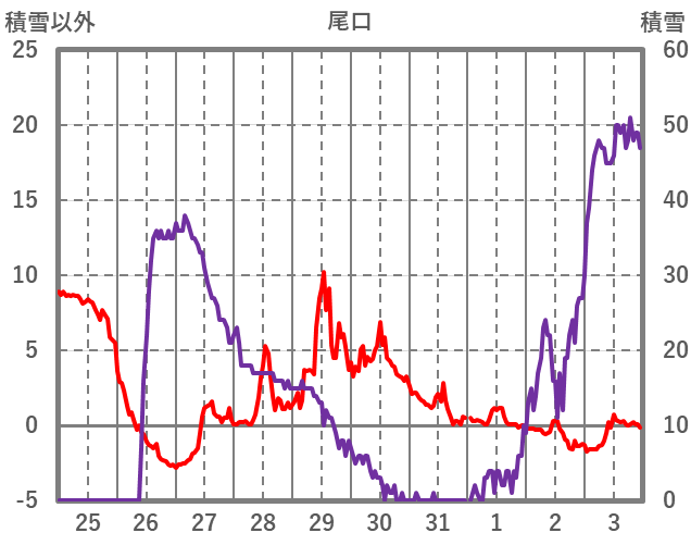 | 日 | 時 | 気温 | 降水 | 風向/風速 | 日照 | 積雪 | 降雪 |