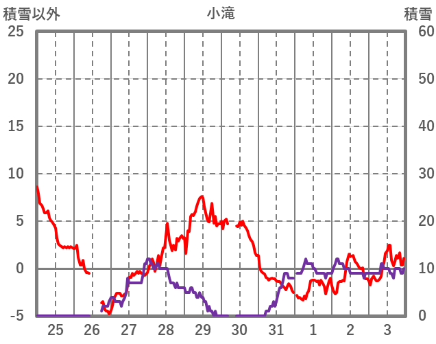 | 日 | 時 | 気温 | 降水 | 風向/風速 | 日照 | 積雪 | 降雪 |