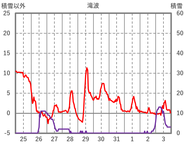 | 日 | 時 | 気温 | 降水 | 風向/風速 | 日照 | 積雪 | 降雪 |