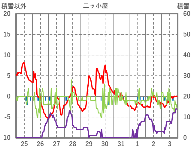 | 日 | 時 | 気温 | 降水 | 風向/風速 | 日照 | 積雪 | 降雪 |