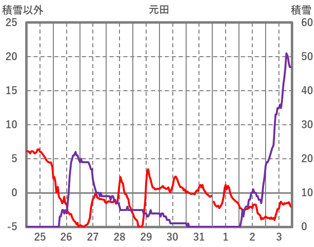 | 日 | 時 | 気温 | 降水 | 風向/風速 | 日照 | 積雪 | 降雪 |