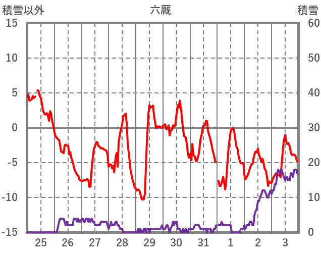 | 日 | 時 | 気温 | 降水 | 風向/風速 | 日照 | 積雪 | 降雪 |
