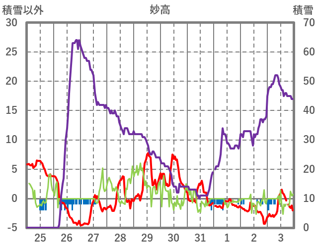 | 日 | 時 | 気温 | 降水 | 風向/風速 | 日照 | 積雪 | 降雪 |