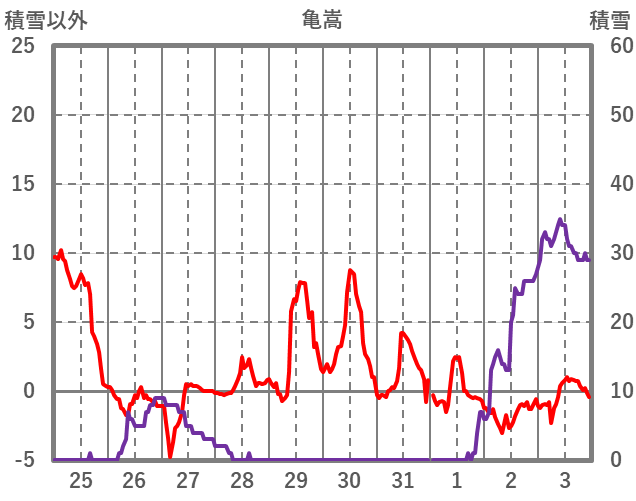 | 日 | 時 | 気温 | 降水 | 風向/風速 | 日照 | 積雪 | 降雪 |