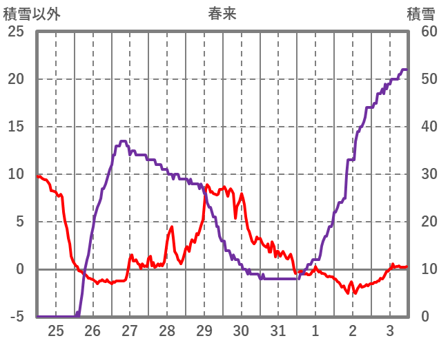 | 日 | 時 | 気温 | 降水 | 風向/風速 | 日照 | 積雪 | 降雪 |
