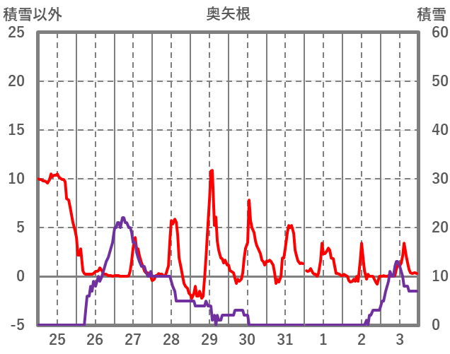 | 日 | 時 | 気温 | 降水 | 風向/風速 | 日照 | 積雪 | 降雪 |