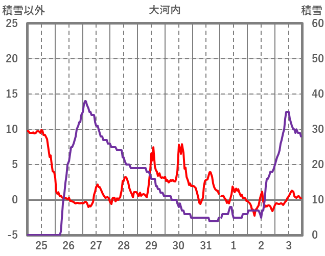 | 日 | 時 | 気温 | 降水 | 風向/風速 | 日照 | 積雪 | 降雪 |