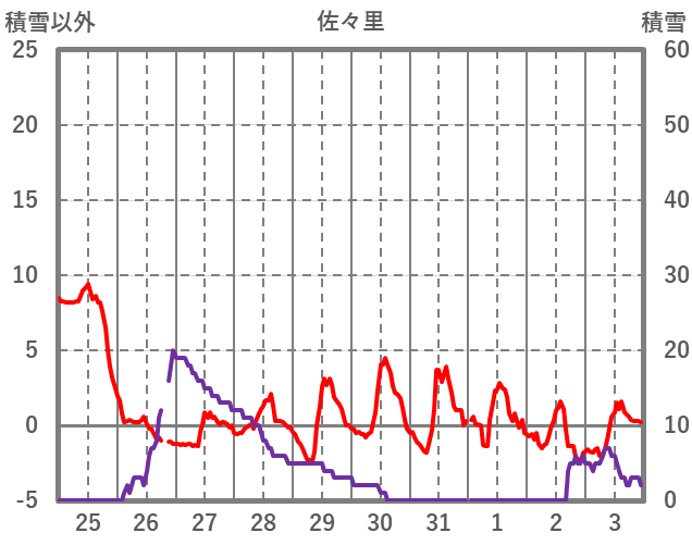 | 日 | 時 | 気温 | 降水 | 風向/風速 | 日照 | 積雪 | 降雪 |
