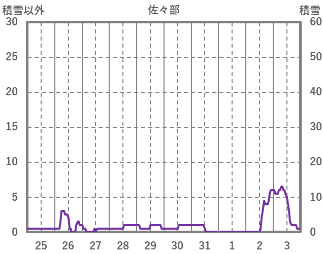 | 日 | 時 | 気温 | 降水 | 風向/風速 | 日照 | 積雪 | 降雪 |