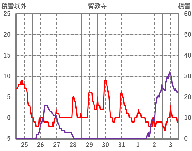| 日 | 時 | 気温 | 降水 | 風向/風速 | 日照 | 積雪 | 降雪 |